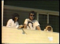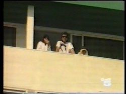 Notes: George, Olivia & Dhani were filmed on the balcony of their hotel suite by a film crew for the Italian news show "Canale 5 News".