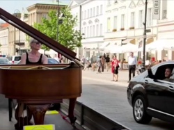 Notes: While a women is being filmed playing piano on the street Paul goes by in his car & waves.